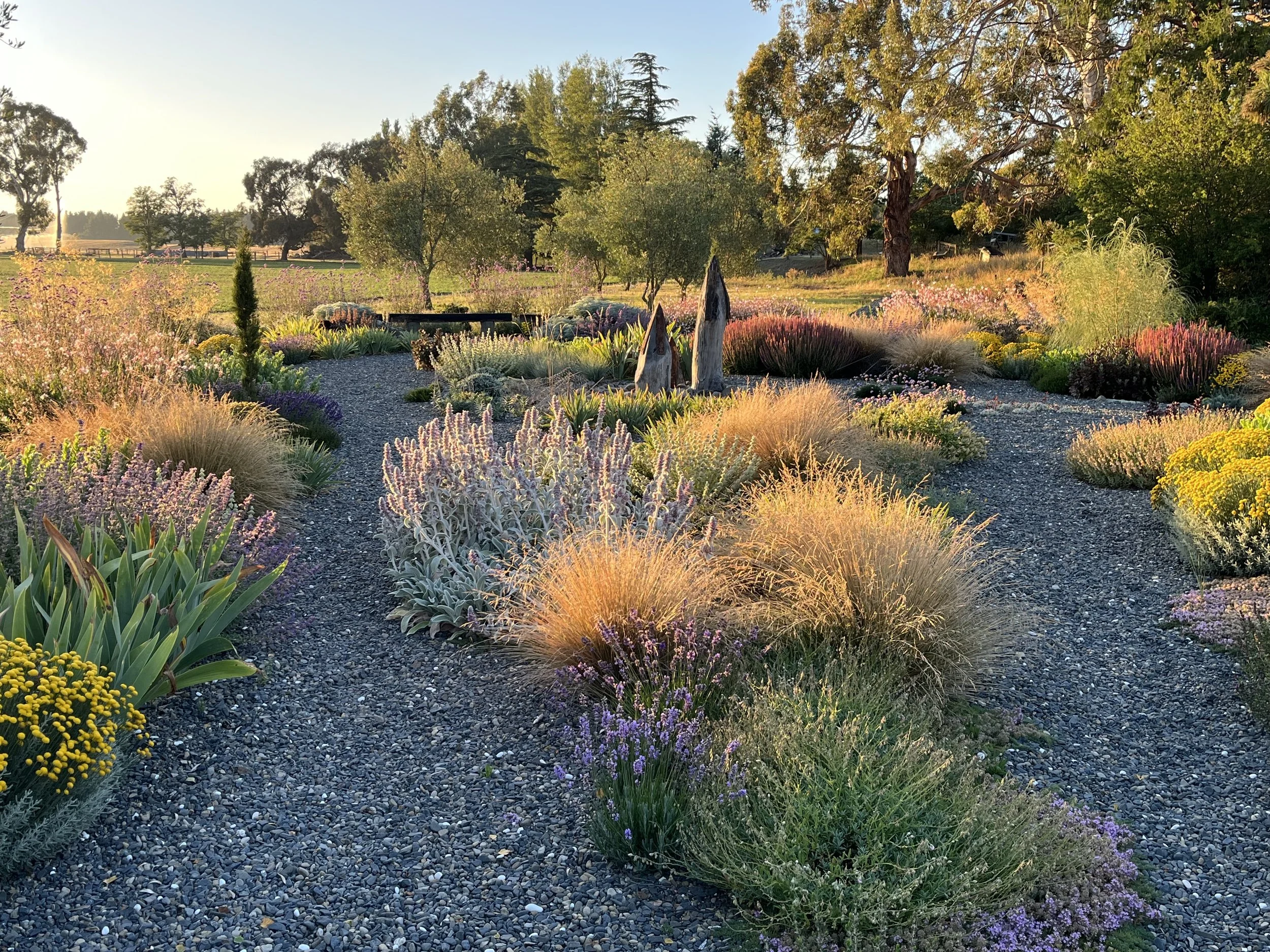 The Naturalistic Garden was created after a workshop with Piet Oudolf in Holland, and features grasses and sweeping clumps of perennials. The now 2-year-old dry/gravel garden, which has had no summer watering, constantly amazes us all with its beauty, resilience & growth.